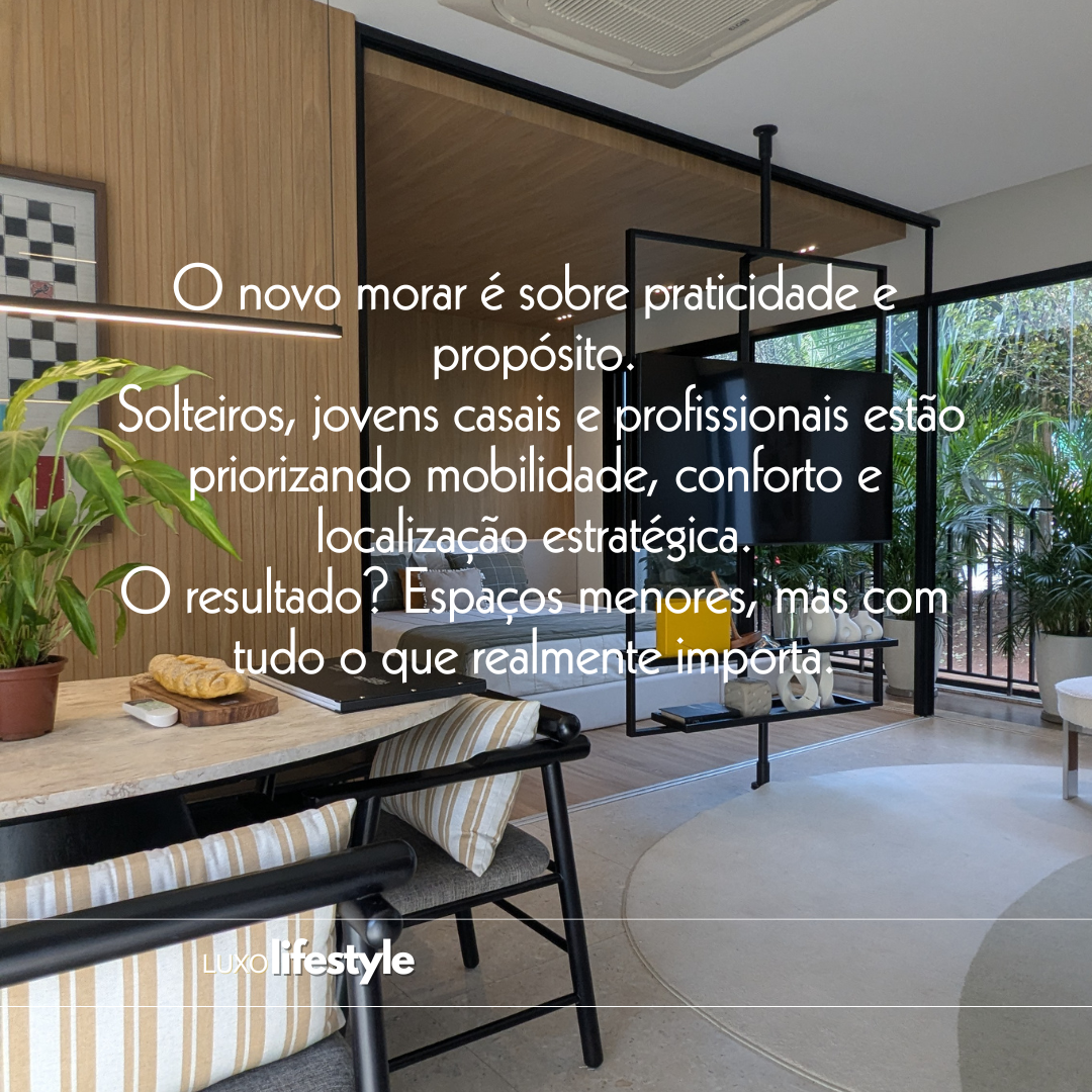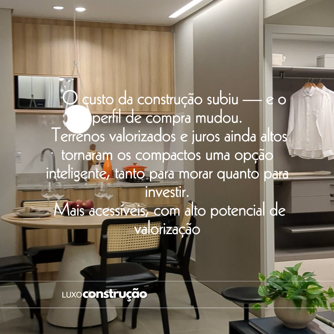 O LUXO NÃO SE MEDE EM METROS QUADRADOS, MAS EM INTELIGÊNCIA. Quem disse que morar bem exige um apartamento gigante, simplesmente não entendeu o novo código de luxo em Goiânia. 😉 Os compactos estão reescrevendo as regras do mercado, e o motivo é uma revolução no seu estilo de vida (e investimento):